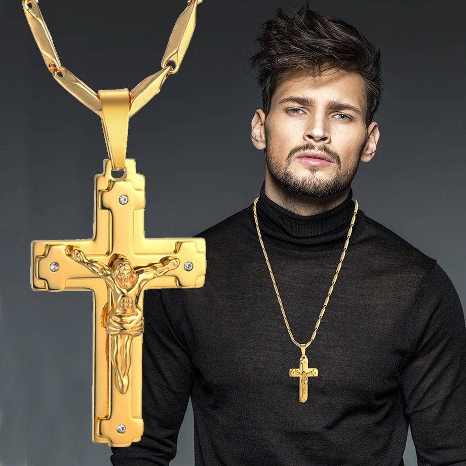 Check out our sale items Mens Gold Cross Chain Male Necklace Christian Jewelry Religious Jesus Crucifix Cross Necklace Penda and enjoy clear enjoyable Shipping on